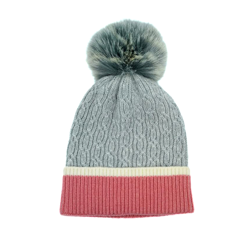 Chunky Cuffed Beanie with Faux Fur Pompom