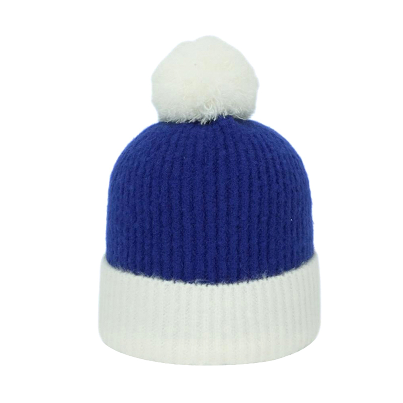 Two Colours Cable Knit Pompom Beanie