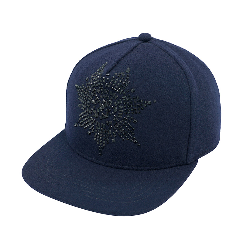 Wool Snapback Caps with Rhinestone Applique Custom Logo Available