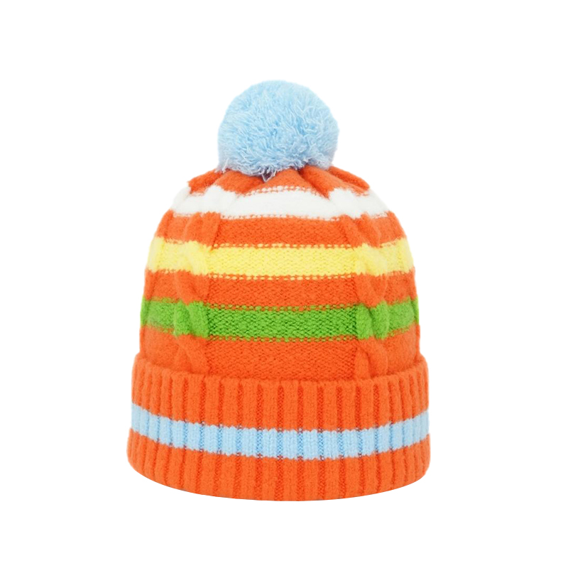 Contrasting Cable Knit with Pompom Beanie Custom Logo Acceptable - ITEM1230155